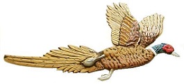 Pheasant Height: 11-3/4" width 21". Weight 3.00 lbs. Aluminum, rustproof. Can be used indoors or outdoors.